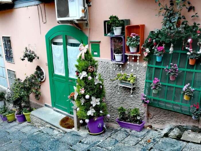 La città bassa e disordinata che si vede proprio da qui, il largo del Petraio luogo di silenzio, luce e profumi di limoni.